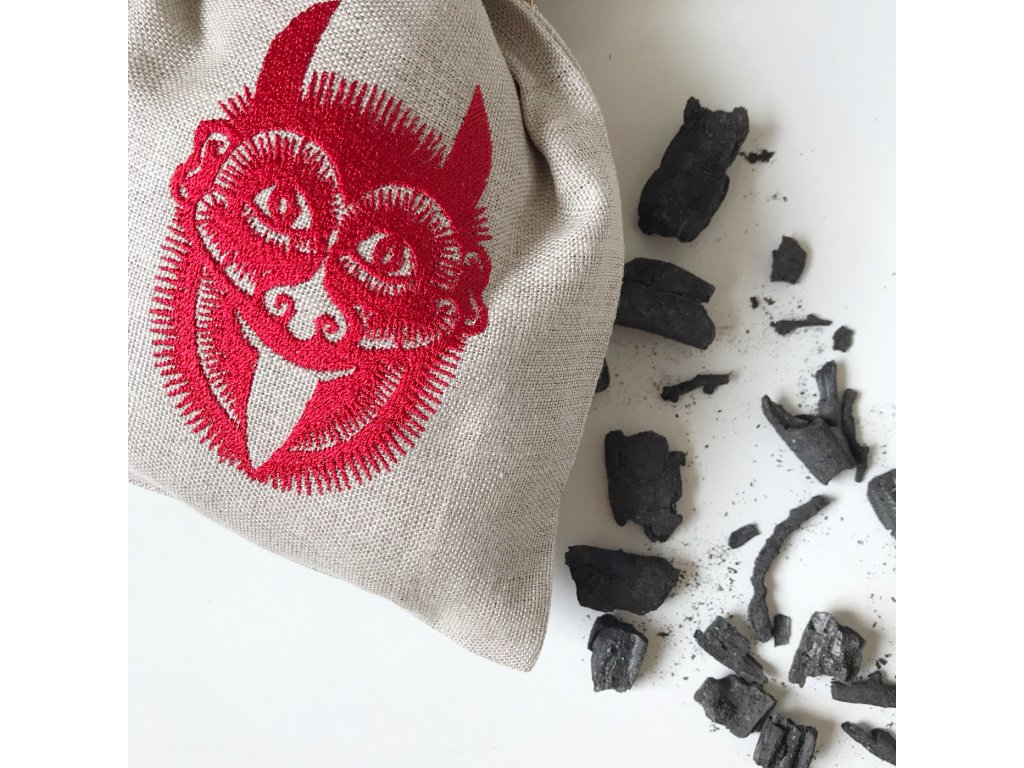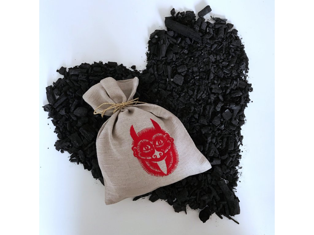 Exkluzivně si u nás můžeš objednat tento pytlík i s čertovskou nadílkou. Lněné pytlíky s čertem nám naplnil řemeslným biouhlem biouhlíři vyrábějící biouhel mimo jiné z prořezávek starých sadů kláštera Porta coeli. A proč biouhlem? Biouhel je báječná věc, která pomáhá krajině a uzdravuje půdu. Chceš-li se dozvědět více, mrkni sem.