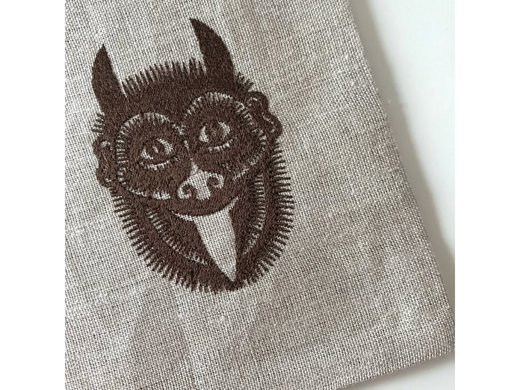 Tento pytlík s čertem je tkaný & šitý & vyšívaný s láskou v Jeseníkách. Společně s pytlíky s Mikulášem a andělem tvoří naši exkluzivní mikulášskou sadu, o jejímž vzniku se více dozvíš tady. Autorkou předloh výšivek je Markéta Vránová z Jestřebích hor. Lněný pytlík má velikost 18x25 cm a je doplněn zlatým provázkem, samozřejmě tkaným v naší domovině, přímo na březích řeky Opavy.