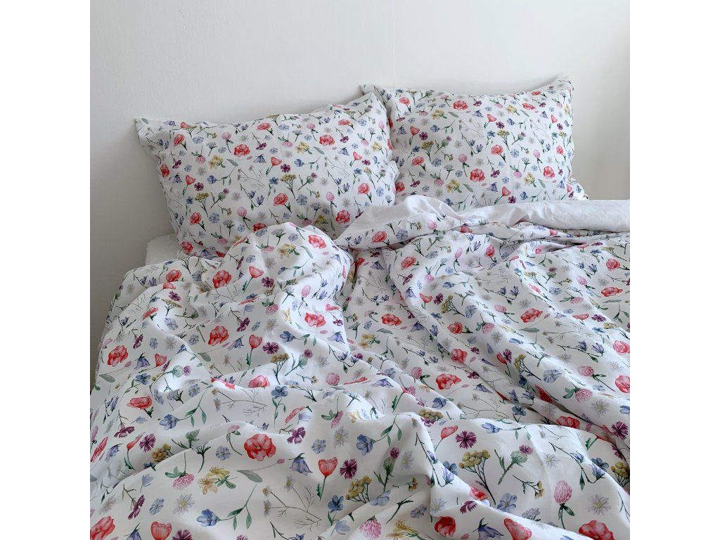Ustel si na rozkvetlé louce. Louce plné květů vlčího máku, modrých zvonků, aromatických řebříčků, nevyzpytatelných vratičů, miloučkých jetelíčků, léčivých heřmánků i nedotknutelných bodláků. Louce, která rozkvetla na 100% lněném povlečení tkaném a šitém v jesenických horách.