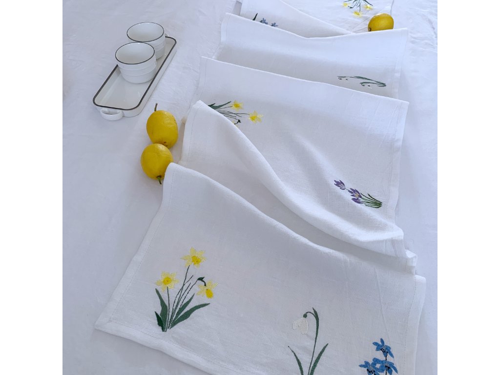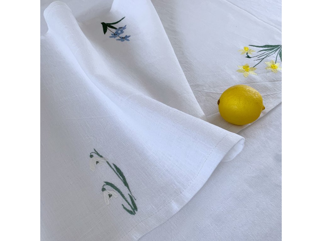 Nech svůj stůl rozkvést jarními kytkami, které Ti nikdy neuvadnou. Do našeho ryzího 100% lnu jsme tisící dotyky jehlou vyšili nevadnoucí symboly jara, nového života a naděje: bílé květy sněženek, barvou slunce rozkvetlé narcisky, modravé ladoňky i krokus symbolizující radost. JESENIKY_uzivatel_barev3