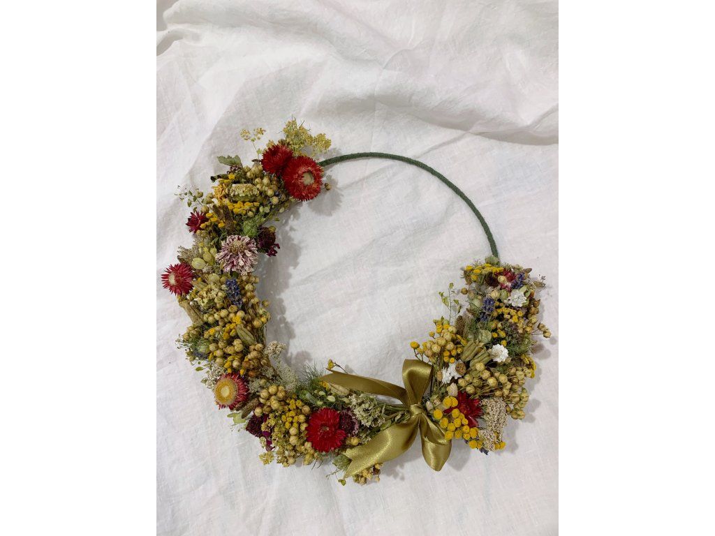 Věneček je ručně umotaný na drátěném základu a zdobený sušeným zahradním kvítím. Svým osobitým kouzlem dotvoří nezaměnitelnou jarní atmosféru Tvého domova. Obvod cirka 35 cm