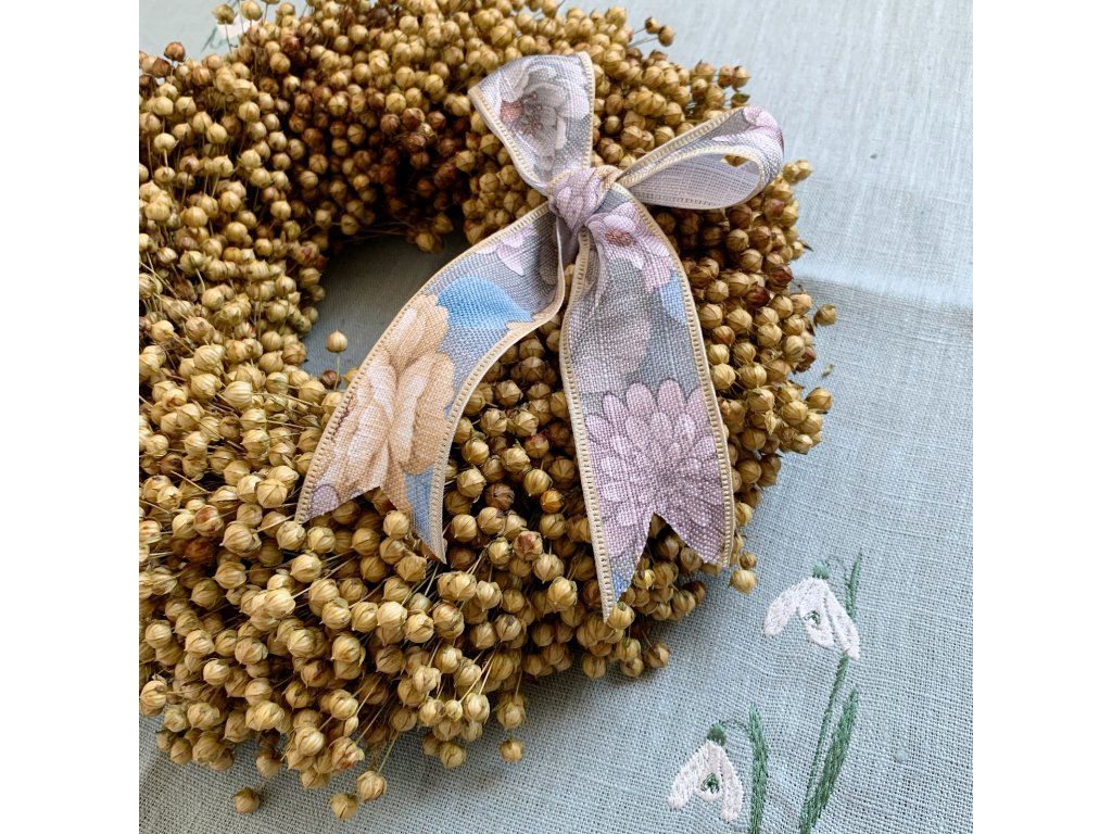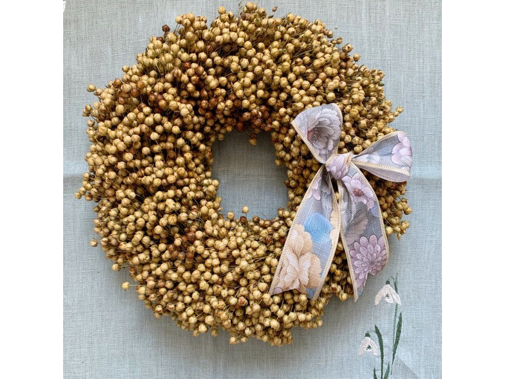 Bohatý věnec z přírodního lnu, ručně namotaný na slaměném, kruhu či kovové obruči. Svým kouzlem omámí příchozí na Tvých vstupních dveřích, nezaměnitelnou atmosféru dotvoří na Tvém jídelním stole, krbové římse či pověšený na zdi jako mistrovské dílo přírody.