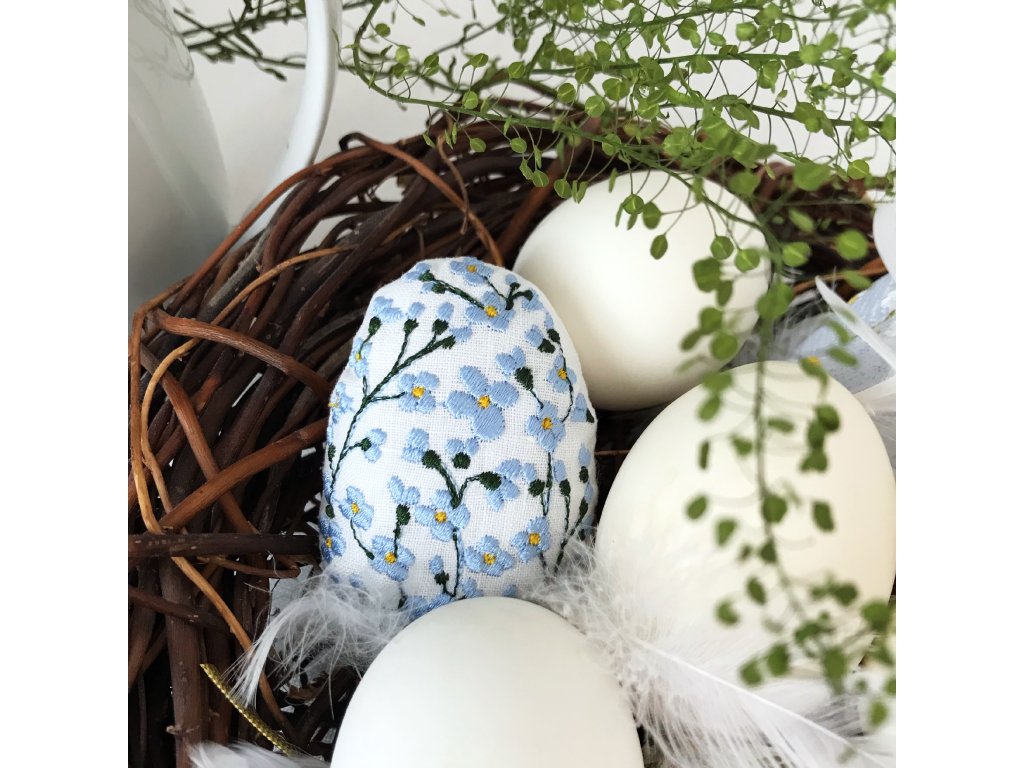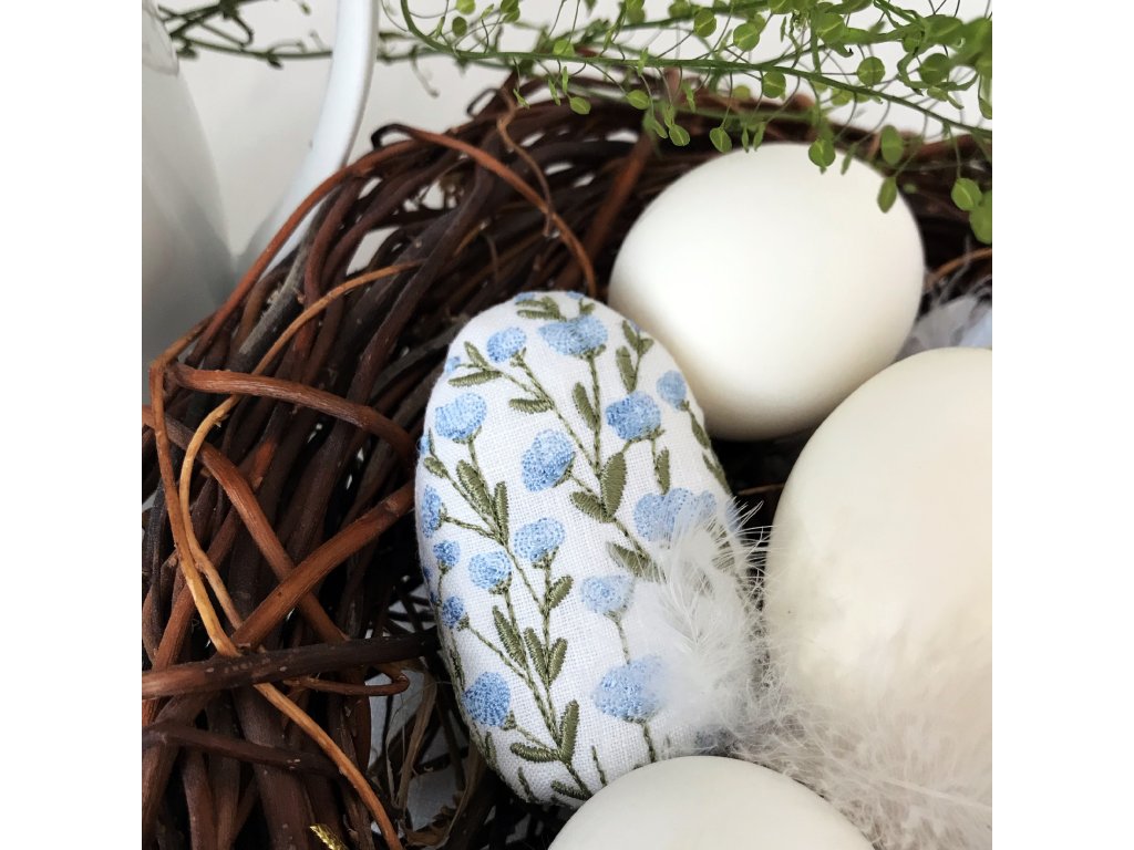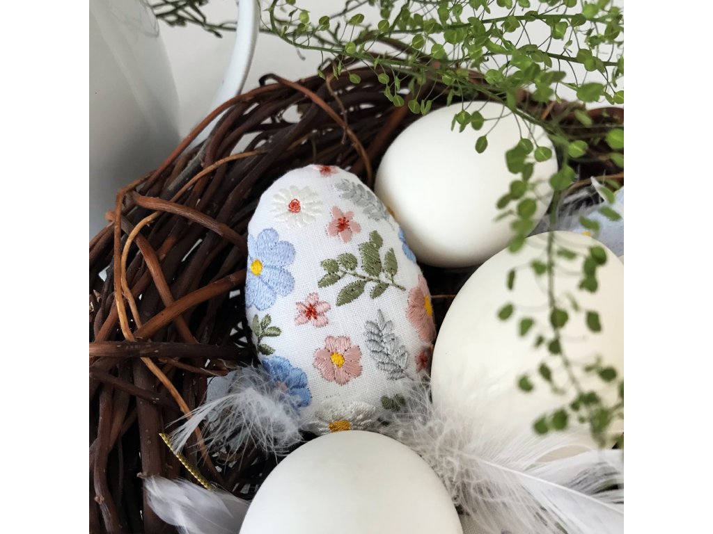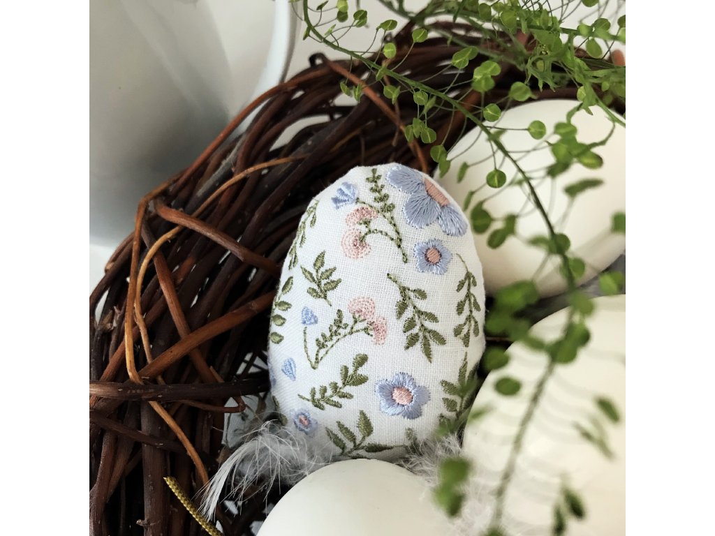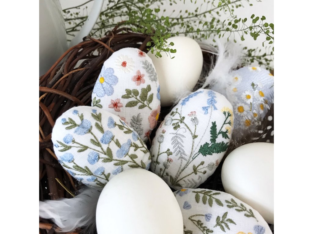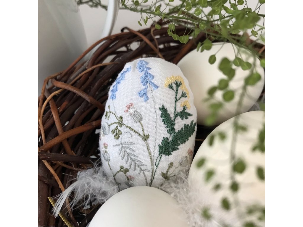 Lněné velikonoční vajíčko má výšku 8 cm. Výšivka je z přední strany vajíčka. Je ušito ze 100% lnu tkaného v Jeseníkách, plněno 100% polyesterem. Vybrat si můžeš z osmi variant květinové výšivky.